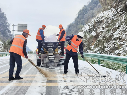 荆楚网(湖北日报网)讯(通讯员 赵坤)11月30日,十堰市竹溪县境内出现大范围雨雪天气,道路结冰、行道覆雪为群众出行带来了极大的安全隐患。