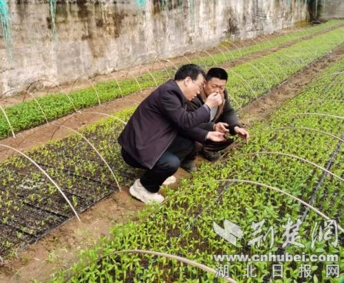 “一定要重点关注苗床的湿度,看这个辣椒苗如果根浅色黑就是有病害,可以洒些草木灰,对蚜虫、日烧病都有很好的防治作用。”2月7日,十堰市郧西县香口乡上香口村一组的辣椒育苗基地里,湖北科技特派员香口工作站成员周国林正在为菜农肖志斌“把脉支招”。