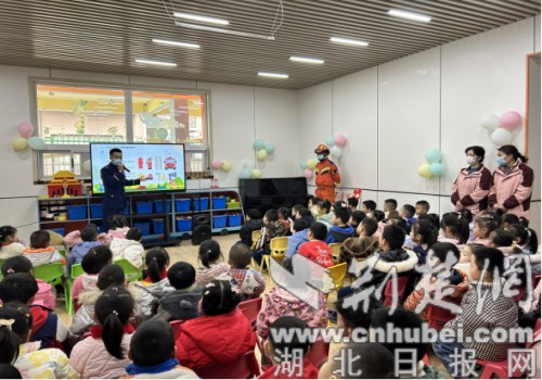 荆楚网(湖北日报网)讯(通讯员张婷)2月24日,十堰市茅箭区五堰街道东岳社区“扫黄打非”工作站特邀该区消防救援支队,到金色童年幼儿园开展春季消防应急疏散演练活动,为未成年学生敲响“护苗”的上课铃。