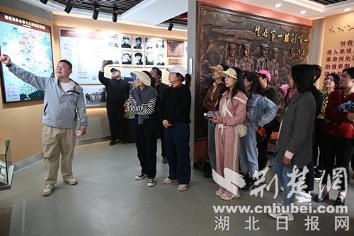 活动中,女职工们走进郧阳红色革命老区-南化塘玉皇山村,这里是中原突围的决胜地,玉皇山顶两棵满是弹痕的古树见证了76年前荡气回肠的战斗。2020年玉皇山村被中组部、财政部列为全国首批红色美丽村庄试点村。2021年水利部将该村作为水利定点帮扶郧阳区“实施党建促乡村振兴”的驻点村。女职工在玉皇山中原突围战斗遗址,观看展馆布展情况,听取现场历史解说,重温中原突围部队在南化塘的战斗历程,接受党史教育,深刻感受革命先辈的英勇事迹。