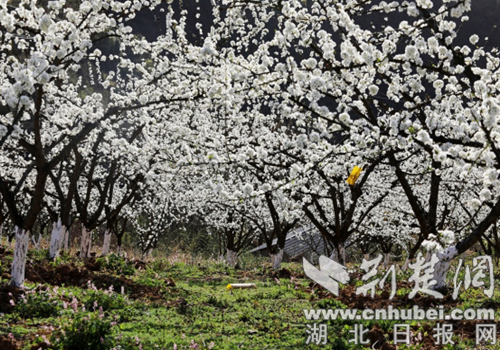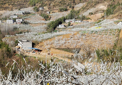 荆楚网(湖北日报网)讯(通讯员 向继华、程平)3月13日,位于十堰市竹山县文峰乡东钦村、滚子岭村脆李迎来了一年中“最浪漫”的季节,1800多亩李子花迎春绽放,洁白的花朵铺满了整个山湾,为春天里的乡村装点上了一层靓丽的色彩。