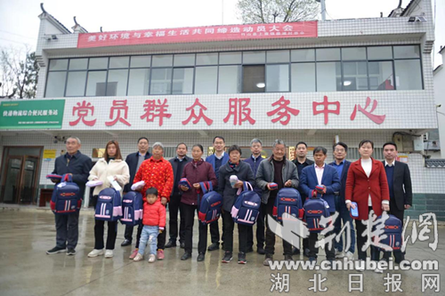 磨滩村50多名中小学生获赠书包文具用品。通讯员 供图