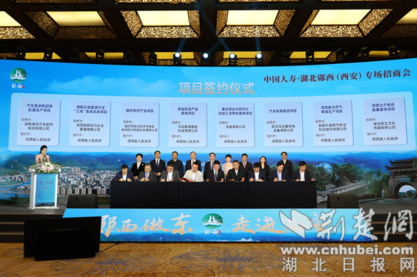 荆楚网(湖北日报网)讯(通讯员 邹景根)4月17日,中国人寿·湖北郧西专场招商会在西安市曲江国际会议中心举行。郧西县现场签订招商引资项目20个,签约金额达110亿元,涉及文旅、数字经济、新能源、智能制造、农产品加工等行业。