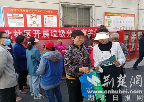 荆楚网(湖北日报网)讯(通讯员 李云)为进一步倡导垃圾分类理念,增加小区群众对生活垃圾分类的知晓度、认同度、参与度,推动绿色环保小区建设。近日,十堰市茅箭区武当路街道党员干部联合路北社区舒逸小区党员干部在“党建+邻里中心”室外开展“垃圾分类 全民行动”志愿服务活动。
