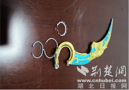 取下的网红匕首玩具 。通讯员 供图
