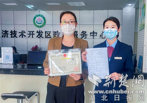 王女士在十堰经开区政务中心几分钟即拿到营业执照 通讯员 供图