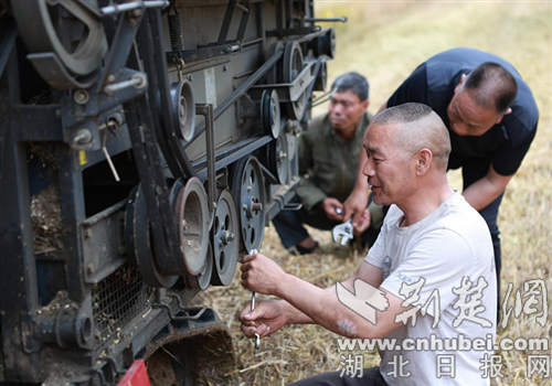 5月25日,在郧西县河夹镇东寺村,郧西庆斌生态农业发展专业合作社负责人钱庆兵抓住晴好天气,另外请来两台收割机,忙着收割成熟的小麦。由于许多村民外出务工,部分农田一年只能种一季,成了“闲田”。为此,钱庆兵购买了联合收割机、旋耕机、播种机等机械,成立了农机合作社,为本村农户代耕代种代收土地120多亩。
