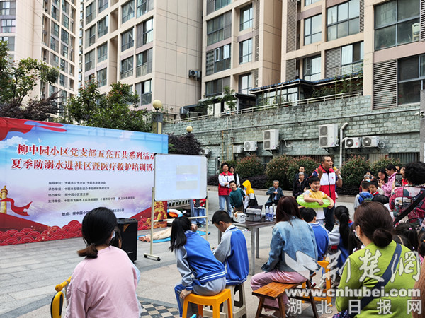 荆楚网(湖北日报网)讯(通讯员 薛明魁、吕博进、袁俊)6月5日,十堰市茅箭区五堰街道柳中园小区党支部组织开展了夏季防溺水进社区暨医疗救护培训活动。活动邀请了十堰市红十字会、十堰市游泳协会和十堰市飞鲨水上救援队,采取现场教学的方式,为小区居民和学龄儿童系统讲解了水上救援和外伤紧急处理的相关知识。