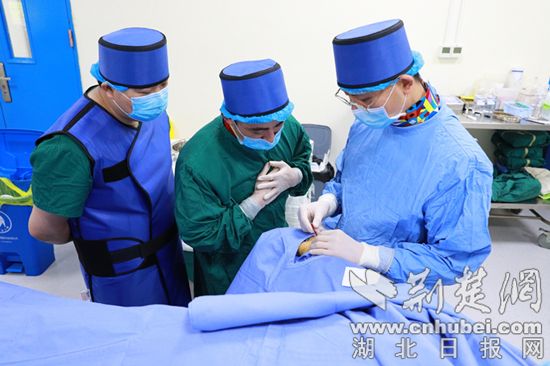 国药汉江医院准确把握医学科学发展趋势和前沿,把介入诊疗立项为重点发展项目。设备上引进美国GE公司IGS 330平板数字血管造影系统(DSA),人才上聘请国药东风总医院心内科一病区副主任何培根常驻内一科,同时组建以内一科主任周黎为首的介入诊疗小组,2020年5月16日介入诊疗中心正式成立运行。