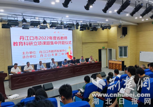 荆楚网(湖北日报网)讯(通讯员周锋、胡海珍、岳传飞)6月16日,丹江口市第二中学报告厅内灯光璀璨,掌声热烈,该市2022年度省教师教育科研立项课题集中开题仪式如期举行。省教师教育学会会长王祖琴、秘书长胡松林,十堰市中小学继续教育中心主任刘道宏、副主任王帆,丹江口市教育局副局长刘文远,丹江口市教师发展中心主任郑磊,及该市立项课题单位的校长、课题负责人、课题秘书、课题研究骨干等100多名精英教师参加。