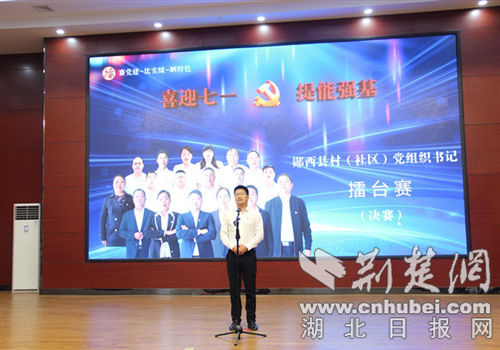 荆楚网(湖北日报网)讯(通讯员 赵林林)“我们坚持党建强村、民主管村、依法治村、文化兴村,深化党建引领村庄治理。”“下一步,我们将结合实际,强化鄂陕党建互联,扎实开展汉江流域综合治理工作……”6月26日,十堰市郧西县委组织部举办村(社区)党组织书记“赛党建、比实绩、晒特色”擂台赛决赛活动,全县18个乡镇(场、区)的18名村(社区)党组织书记代表依次登台演讲,现场掌声阵阵,气氛热烈。