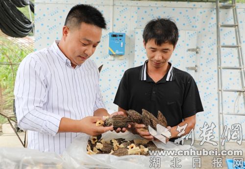轻土坪村创业能人张玉兵(右)带领群众发展羊肚菌和木耳产业。通讯员 供图