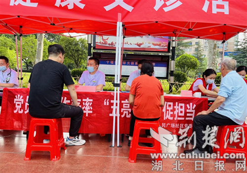 荆楚网(湖北日报网)讯(通讯员 彭俊宜、骆明栓)8月18日,十堰市张湾区车城路街道人民广场社区充分利用“五亮五共”党员资源,联合中西医结合医院在人民广场开展义诊活动。