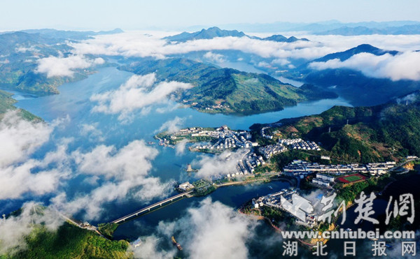 荆楚网(湖北日报网)讯(通讯员 董武、向继华)金秋9月,漫步竹山县上庸镇圣水湖旅游度假区,一边是碧波荡漾、鱼跃鸟飞、杨柳依依,另一边则是游客嬉水、快艇飞驰的欢快景象……