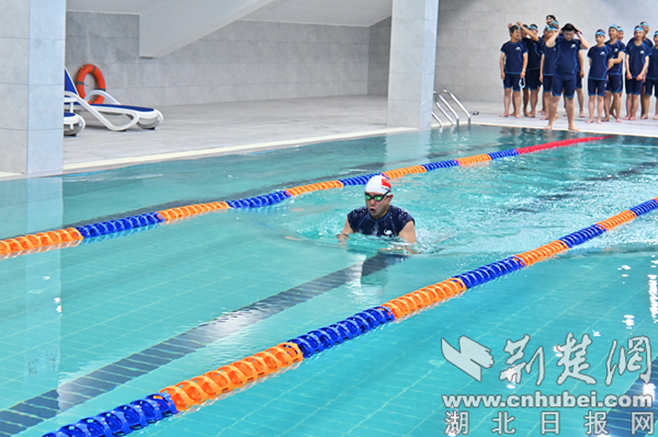 游泳教练员进行示范。 通讯员供图