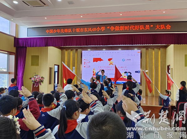 荆楚网(湖北日报网)讯(通讯员 谢清)为庆祝中国少年先锋队建队74周年,贯彻落实《中共中央关于全面加强新时代少先队工作的的意见》,加强对少年儿童的思想引领,引导广大少先队员继承和弘扬少先队的光荣传统,激发少先队员的光荣感、使命感,共青团张湾区委员会、张湾区少工委在十堰市东风48小学举行了“十·一三”建队日暨“争做新时代好队员”主题大队会示范活动。