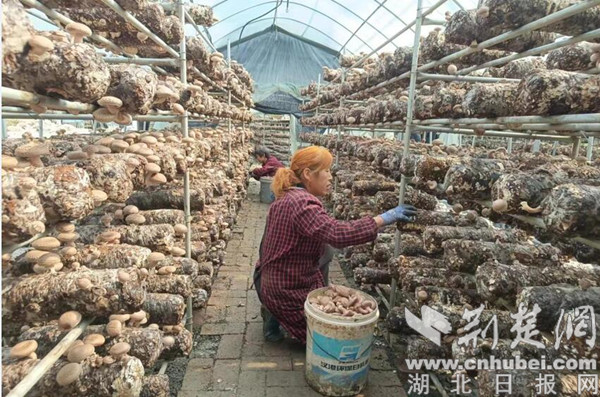 荆楚网(湖北日报网)讯(通讯员 周梦颖)金秋送爽,万物丰收。近日,十堰市郧西县涧池乡涧池村茅草坡香菇种植基地内,十几名工人正在大棚里来回穿梭,忙着采摘香菇,淡淡的菌香充斥在香菇大棚内,一派热闹繁忙的景象。