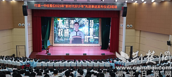 荆楚网(湖北日报网)讯(通讯员 吴星、王丽欣)10月19日晚,十堰市竹溪一中组织高一学生集中观看2023年“新时代好少年”先进事迹发布仪式。