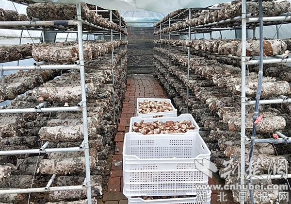荆楚网(湖北日报网)讯(通讯员 刘慧、胡梦瑶)近日,走进十堰市郧西县羊尾镇老观庙村香菇大棚,淡淡的菌香扑鼻而来,一袋袋菌棒整齐排列,一朵朵香菇升柄展伞,格外引人注目。村民们穿梭于大棚间,正忙着采摘成熟的香菇,大家脸上喜气洋洋,透露着丰收的愉悦。