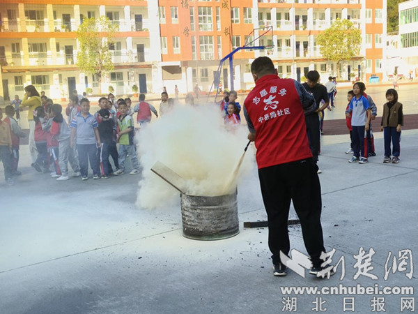 荆楚网(湖北日报网)讯(通讯员 赵金敏、贺羽、王翔)为增强辖区校园师生的消防安全意识和提高应急处置技能,努力推进消防工作,积极创建“平安校园”。11月1日下午,十堰市张湾区车城路街道中岳路社区联合十堰居安消防在东风43小学开展“消防安全进校园”暨“119消防日”宣传活动。