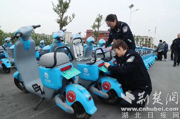 荆楚网(湖北日报网)讯(通讯员 郭蓓蕾)11月7日,笔者从荆门市公安局交通警察支队获悉,为进一步加强共享电动自行车的规范管理,深化推进“放管服”便民措施,为辖区企业提供便捷服务,此前该支队车管所了解到荆门市交通旅游投资集团有限公司准备在荆门城区投放200辆共享电动自行车,遂主动与企业对接,提供上门服务,以打通办证服务“最后一公里”。