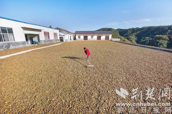 油茶丰收晾晒。 通讯员供图