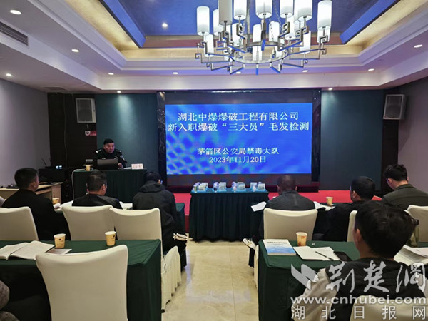 荆楚网(湖北日报网)讯(通讯员 戢子轩)为进一步加强对民爆行业的管理,有效提高企业员工的禁毒意识,护航法治化营商环境。11月20日,十堰市茅箭区公安分局禁毒大队走进湖北中爆爆破工程有限公司,对新入职的95名爆破员、保管员、安全员开展禁毒宣传。