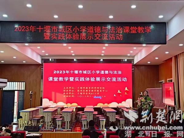荆楚网(湖北日报网)讯(通讯员 付清裕、杨贇)为更好地落实省市大中小学思政课一体化建设会议精神,探究同一主题下不同学段的教学策略,科学有效地推进小学道德与法治和其它学科的有机融合,由十堰市教育科学研究院主办、张湾区教育教学服务中心协办的“2023年十堰市小学道德与法治课堂教学暨实践体验展示交流活动”于11月23日在十堰市东风61小学报告厅举行。