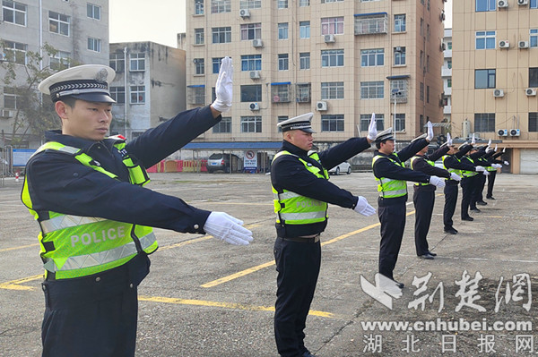 荆楚网(湖北日报网)讯(通讯员 李妮娜)为进一步提高民辅警的交通指挥业务素质和实战技能,全力促进队伍正规化建设,提高队伍整体战斗力和凝集力,12月4日,十堰市房县公安局交警大队组织开展队列及手势操训练,持续推进实战大练兵训练活动。