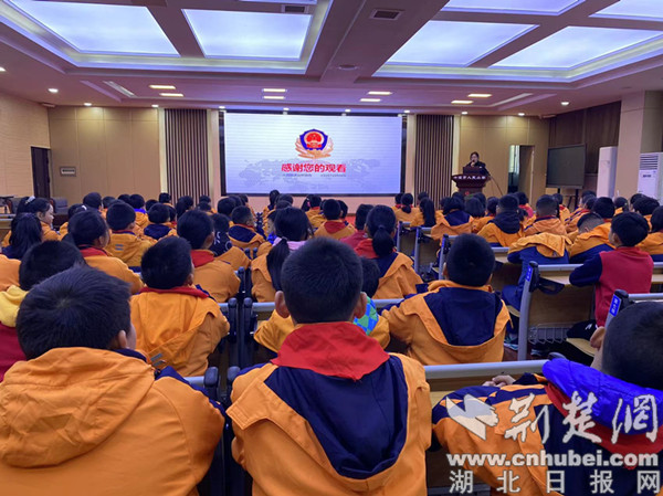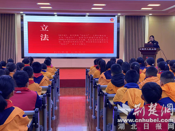 荆楚网(湖北日报网)讯(通讯员 汪丽君)12月4日上午,在第十个“国家宪法日”来临之际,为进一步提升未成年人的宪法意识和法治观念,增强未成年人对宪法知识的理解,推动宪法教育进校园,营造良好的学习宪法、遵守宪法的氛围,十堰市公安局茅箭区分局人民路派出所深入辖区人民小学南校区开展宪法知识宣讲活动。