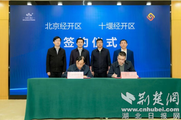 荆楚网(湖北日报网)讯(通讯员 刘爱理)12月4日,十堰经济技术开发区(简称“十堰经开区”)与北京经济技术开发区(简称“北京经开区”)在北京市签署战略合作协议,将充分发挥各自优势,探索国家级经开区合作共建新机制,共同推动两地经济转型发展。北京经开区工委书记张强,十堰市人大常委会党组副书记、副主任柯贤国,十堰经开区党工委书记、管委会主任夏树应出席签约仪式,北京经开区工委委员、管委会副主任沈永刚与十堰经开区党工委委员詹书武代表两地经开区签署战略合作协议,十堰市招商中心副主任万敏,十堰经开区领导王敏、邹罡,北京经开区和十堰经开区相关部门负责人参加活动。