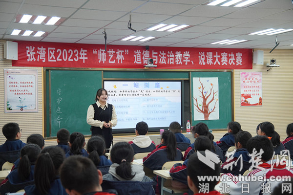 荆楚网(湖北日报网)讯(通讯员 郭欢欢、郑前川)为推动《义务教育道德与法治课程标准(2022年版)》的贯彻落实,促进学生核心素养的培养,充分发挥思政课程在落实立德树人根本任务中的关键作用,积极探索“双减”背景下道德与法治课堂教学的实施新途径,结合张湾区教育局《张湾区思政课一体化综合改革试验区实施方案》意见,12月6日,由张湾区教育教学服务中心主办,东风七中承办的张湾区第十六届“师艺杯”初中道德与法治说课、讲课决赛在东风七中录播室举行。