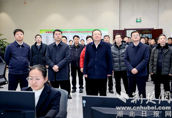 郧西县党政代表团在丹江口市水质安全保护指挥调度中心考察。 通讯员供图
