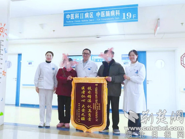 荆楚网(湖北日报网)讯(通讯员 马婷婷、李廷玉)近日,90岁高龄的患者申爷爷及家人将一面印有“技术精湛 认真负责 医者仁心 大爱无疆”字样的锦旗送至十堰市人民医院中医医学中心2病区杨文昊主任和陈峰副主任医师手中,以表达对中医科2病区全体医护人员精心治疗和悉心护理的赞誉和感谢。