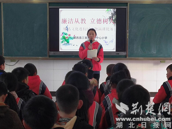 荆楚网(湖北日报网)讯(通讯员 张维、万佳)“同学们,我们在家要做勤劳节俭的孩子,在学校要做诚实守信的学生,将来在社会上要做一身正气、两袖清风的公民。”近日,十堰市郧西县三官洞林区中心小学用主题演讲、故事会、书画展等形式,开启年度清廉学校建设主题月活动。