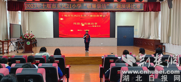 荆楚网(湖北日报网)讯(通讯员 朱萌)12月15日下午,十堰市东风21小学举行了“敬廉崇洁”主题演讲比赛,学生自行收集古今中外诚信廉洁的故事参赛。