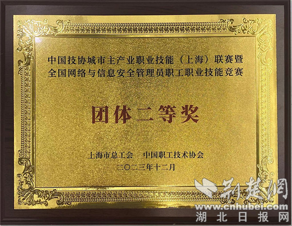 荆楚网(湖北日报网)讯(通讯员 刘辉) 12月19日,在2023年中国技协城市主产业职业技能(上海联赛)暨全国网络与信息安全管理员职工职业技能竞赛中,国网十堰供电公司组建代表队获得了团体二等奖的荣誉。其中,国网十堰供电公司信通分公司朱哲凯和张诗满两位选手分别获得个人二等奖、个人三等奖的荣誉。
