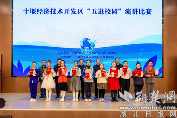 荆楚网(湖北日报网)讯(通讯员 刘爱理、熊宛露)12月20日,由十堰经开区党工委、管委会主办,区公共事务局承办的十堰经开区“五进校园”演讲比赛在十堰国际会展中心举行。来自全区中小学的10名参赛选手结合自身在“五进校园”活动中所学所悟,用演讲的方式,阐述自己对生态环境保护工作的理解,争做绿色低碳发展理念的践行者、传播者,以此带动家庭、影响社会,形成全民参与绿色生态治理的浓厚氛围。