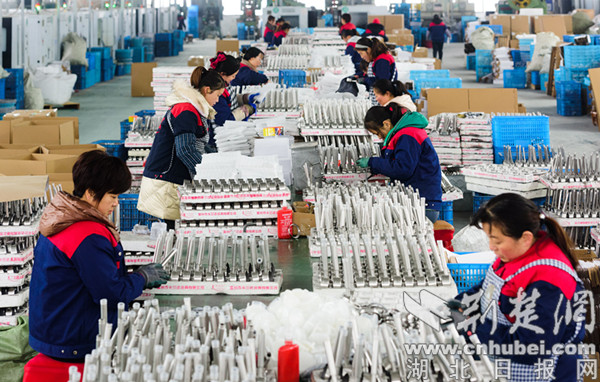 荆楚网(湖北日报网)讯(通讯员 向继华、余明明、但兴竹)隆冬时节,寒风凛冽。12月21日,位于竹山县宝丰镇卫浴产业园内的湖北卡兰达洁具科技公司车间里却是一片热火朝天的生产景象。两条生产线上数十名工人们正忙着生产卫浴产品,从原料、成型、喷釉、抛光、检包……一整套生产流程正在有序进行。