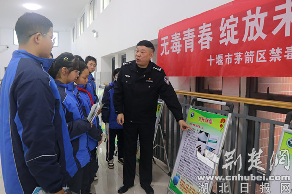 荆楚网(湖北日报网)讯(通讯员 汪媛、曾凡喜)为进一步增强青少年学生拒毒、防毒意识,提高识毒、辨毒能力,引导教育青少年珍爱生命、远离毒品,1月11日下午,十堰市茅箭区北京路中学邀请茅箭区禁毒中心的警官,到校开展以“健康人生,绿色无毒”为主题的禁毒知识大讲堂活动。