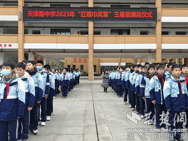 荆楚网(湖北日报网)讯(通讯员 董丽)火红的队旗高高飘扬,鲜艳的红领巾系满理想。为切实发挥奖章激励的积极作用,增强少先队员的光荣感和组织归属感。1月15日,十堰市茅箭区天津路中学举行了“红领巾奖章”三星章颁章仪式。