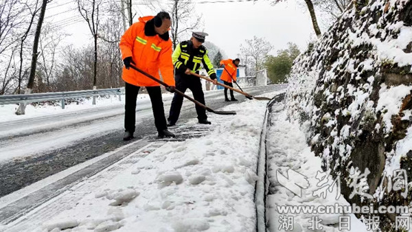 此轮降雪,十堰公安交警和高警部门以雪为令,迅速启动恶劣天气道路交通安全工作预案,积极组织警力对危险路段和容易积雪路段进行巡查,全方位防范交通事故发生。为应对降雪和冻雨可能导致的道路湿滑结冰现象,交警部门和山区农村派出所积极协调对接,增加警力应对保畅通。