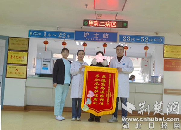 荆楚网(湖北日报网)讯(通讯员 马婷婷)近日,十堰市人民医院甲乳血管外科2病区医护人员接连收到两名患者送来的锦旗。来自丹江口的袁先生和郧西县的曹女士分别将印着“医术精湛除顽疾 护理精细暖人心”“医德高尚医术精湛 尽职尽责护理周到”的锦旗送到甲乳血管外科2病区,感谢师贞宗主任团队精湛的医疗技术、护理团队细致入微的精心服务。