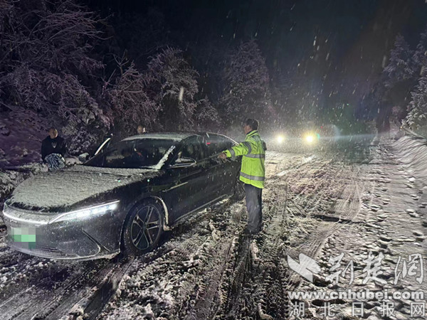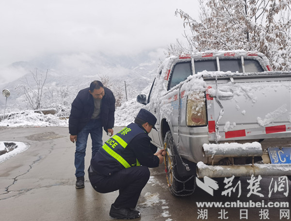 荆楚网(湖北日报网)讯(通讯员 张捷)“前方路面结冰,要谨慎慢行……”1月22日一大早,十堰市郧西县公安局湖北口派出所民辅警顶着严寒,坚守在路面一线,开展交通劝导工作,叮嘱过往车辆驾驶员减速慢行,帮助安装防滑链。