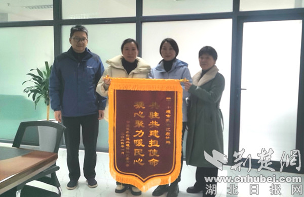 荆楚网(湖北日报网)讯(通讯员 权荣)1月30日下午,十堰市张湾区花果街道二堰铺社区两委将一面印有“共驻共建担使命,凝心聚力暖民心”的锦旗送到张湾区统计局,并代表全体社区居民对区统计局近年来对二堰铺社区帮扶表示感谢。