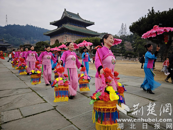 武当山传统民俗节目及巡游(舞龙、舞狮、小车、采莲船、抬花轿等)非遗展演以及古风cosplay沉浸式巡游。