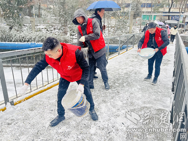 荆楚网(湖北日报网)讯(通讯员 朱雅琪、郑彦)大雪纷纷扬扬,为城市增添别样的景致,也为居民的出行带来了不便。十堰市张湾区车城路街道以雪为令,第一时间启动应急预案,街道干部迅速响应在辖区开展扫雪除冰行动,为辖区居民的日常出行保驾护航。