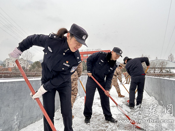 “大娘!这桥上都结冰了,走路要注意脚下……”9时,在茅箭区东城经济开发区茅箭堂村,东城开发区派出所民警发动辖区平安义警、退役军人和志愿者开展铲雪除冰行动。