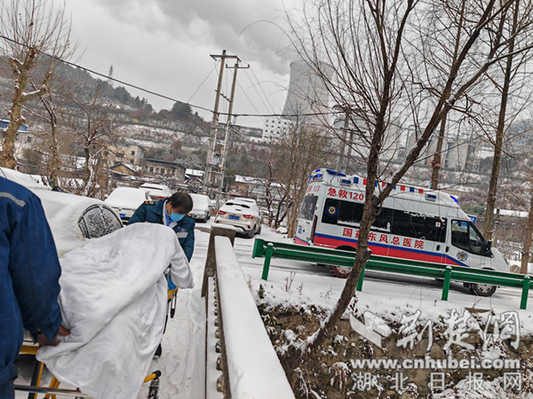 在基层,急救人员历经千辛万苦接回急危患者。2日中午12时,郧阳区谭山镇东岳村民电话求救,家中有人脑梗塞伴偏瘫,突发心悸,急需救治。谭山镇卫生院急救站接到任务后,急救医务人员立即出发。沿途大雪纷飞,路窄坡长,路面冰滑,艰难前行。为了患者安全,出诊人员不畏严寒,下车铲雪,历经4小时,于下午4时患者平安入院。