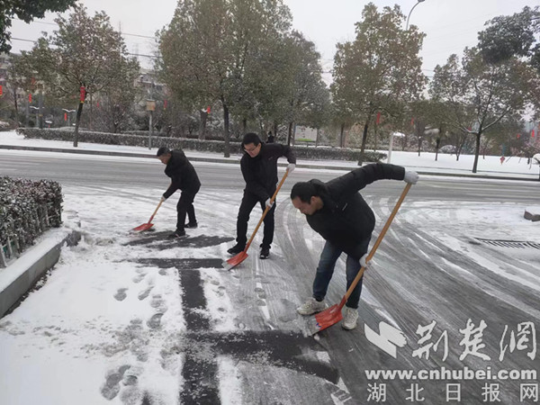 荆楚网(湖北日报网)讯(通讯员 程灏)2月2日夜间,十堰市普降大雪,路面出现积雪、结冰现象。为应对此次强降雪天气,东城开发区应急突击队全力以赴开展除雪保畅工作。截至2月3日上午共组建冬季除雪保畅应急队伍16支197人,使用融雪剂4吨、除雪铲及铁锹150把,各类警示标志标牌及警示锥筒200个。